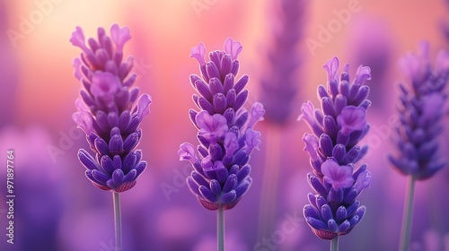 Closeup of lavender flowers with a softfocus background in gentle light : Generative AI