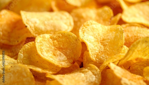 chips, potato, snack, food, yellow, gold, crispy, salty, delicious, texture, close, up, pile, many, round, thin, foodstuff, savoury, detail, closeup, background, image, food photography, light, bright, snack food, potato chips, unhealthy
