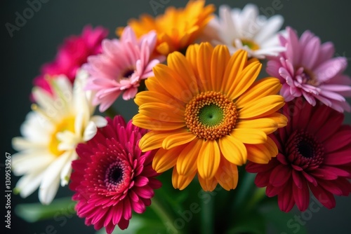 Close-up of mixed flower bouquet, rich color saturation, flower background, wallpaper, bright colors