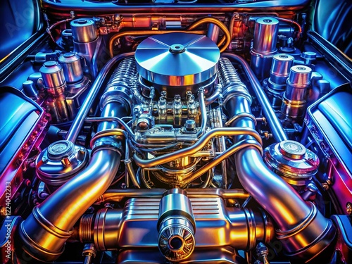 Close-up of Modern Car Engine Fuel Injectors and Components: Automotive Technology Detail