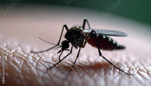 Close-Up of Mosquito Biting Human Skin for World Mosquito Day Awareness