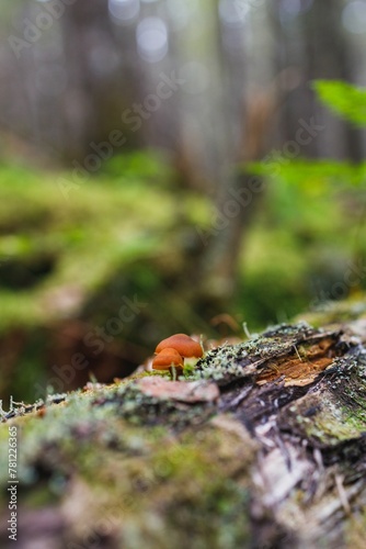vertical, selective focus, closeup, mushroom, fungal, timberland, wood, park, forest, environment, nature, wildlife, ecology, grass, botany, plant, outdoors, fresh, growth, background, wallpaper, cute, autumn, season, small, texture, red, moss, green, flora