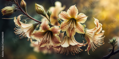 Close-up of pale peach flowers with intricate details, showcasing their delicate structure and creamy texture, symbolizing natural beauty and serenity