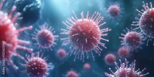 virus, cell, pink, microscope, microscopic, biology, science, medicals, health, disease, disease, infection, contagion, microbiology, research, laboratory, background, blue, spiky, structure, intricate, floating, abstract, closeup, macro, detail, pattern, texture, shape, form, organic, tiny, small, red, purple, magenta, round, ball-shaped