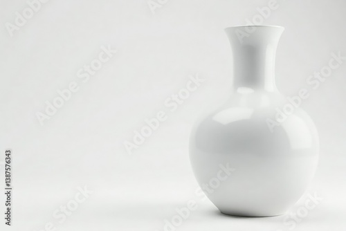 Close-up of pristine white porcelain vase on stark white background, white, flawless