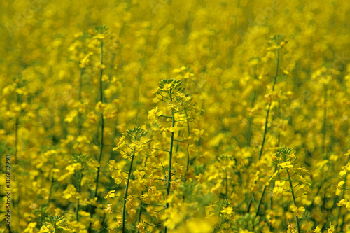 Close-up of rapeseed flowers and buds on a rapeseed field