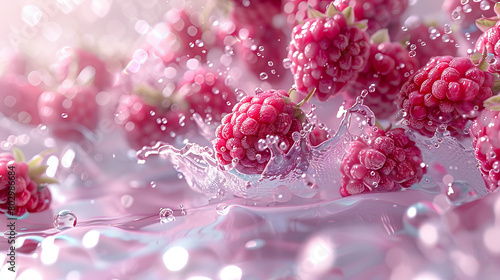 closeup of raspberry in water splash, 300 DPI, aesthetic, berry