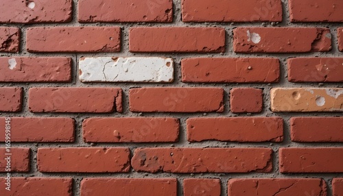 Close-Up of Red Brick Wall with Varied Textures and Colors for Architectural and Construction Themes