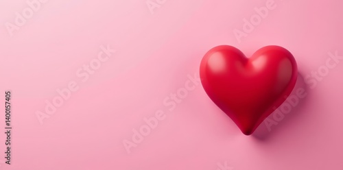 Close-up of red heart symbol on pastel pink backdrop with copy space, relationship, vibrant
