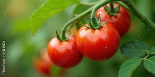 Close-up of ripe red tomatoes growing on vine, crop, agriculture