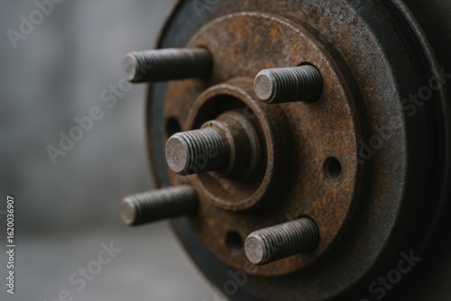 Close-Up of Rusty Brake Disc with Studs - Automotive Parts Photography