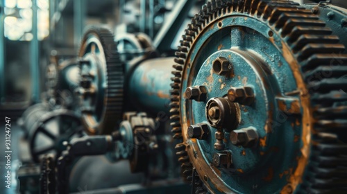 gear, metal, machine, machinery, industrial, factory, rust-eaten, steel, vintage, technology, manufacturing, engineering, equipment, mechanic, old, part, work, production, workshop, construction, iron, gear, mechanism, cogwheel, engine, closeup, detail, structure, heavy, grease, nut, bolt, blue, brown, grey, background