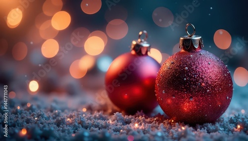 Close-up of shimmering, abstract Christmas ball ornaments , festive, ball