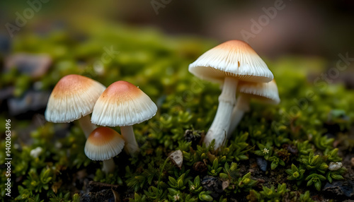 mushroom, fungal, forest, nature, macro, closeup, moss, ground, detail, wildlife, plant, floor, small, close, up, wild, brown, white, organic, soft, sharpened, light, detail, scene, photo, mushroom, cover