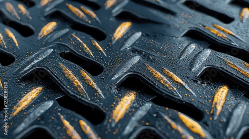 Close-up of textured metal surface with orange highlights, showcasing industrial design.