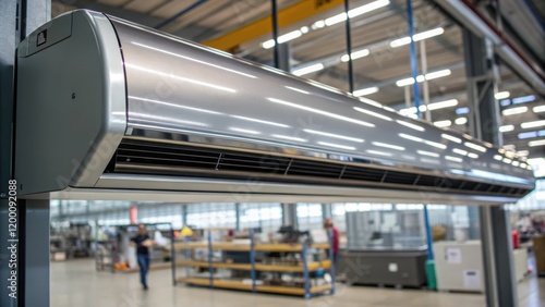 closeup, air, curtain, sleek, metallic, surface, reflecting, surrounding, factory, environment, modern, design, industrial, energy, efficiency, thermal, barrier, insulation, productivity, manufacturing, aesthetic, contemporary
