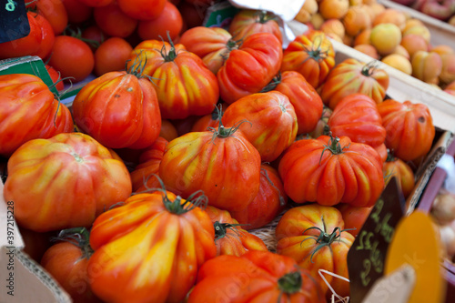business, close-up view, commercialism, consumerism, container, display, displaying, food, france, fresh, food market, healthy eating, healthy lifestyle, many, market, nobody, on sale, produce, product, red, retail, retail store, selective focus, selling, small business, store, supermarket, tomatoes, ugliness, vegetable, abundance
