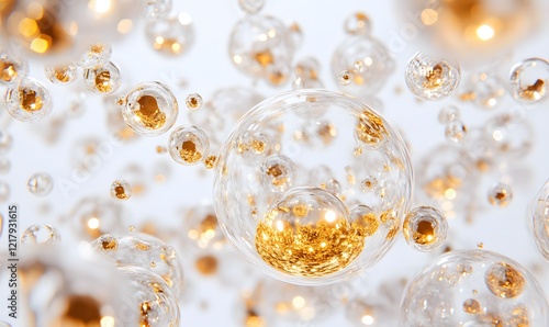 Close-up of transparent bubbles, Cosmetics, Research, generation AI