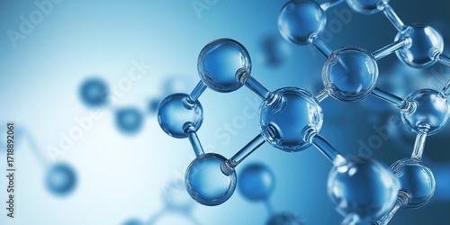 Close-up of transparent carbon saturation molecules forming intricate structure on blue background symbolizing scientific skincare technology and nature