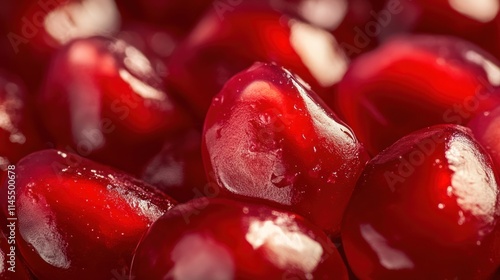 Close-up of vibrant pomegranate seeds showcasing their juicy texture and rich color.