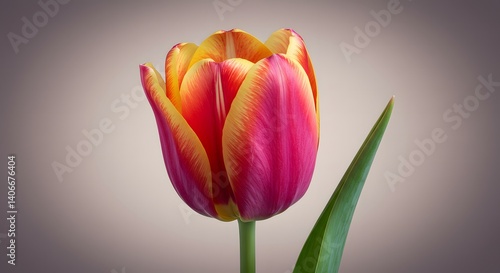 tulip, flower, blooming, blossom, leaf, stem, flora, floral, plant, spring, growing, vibrant, colourful, red, yellow, green, closeup, macro, still life, single, isolated, indoor, studio, background, nature, botany, object, botanical, garden, fresh, closeup, cut-out, neutral, bloomed