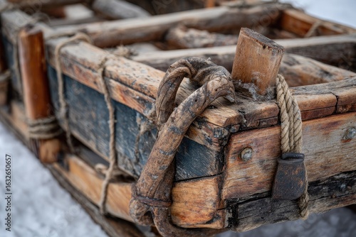 sled, wooden, weathered, rustic, winter, ice, snow, snowdrift, old, vintage, antique, transport, hand-made, craft, detail, close, closeup, knot, rope, harness, carriage, ancient, primitive, aged, decayed, wood, plank, support, design, exterior, snow-covered, glacé, nature, outdoors, timbering, texture, detail, history, tradition, transportation, drift