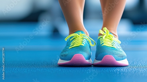 shoe, blue, lace, running, woman, yellow, foot, fitness, gym, close, up, detail, sneaker, perspective, endurance, motivation, jogging, lifestyle, healthy, training, exercise, athletic, sport, cardio, physical exercise, active