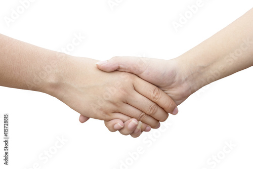 Closeup of woman shaking hands isolated on white background. Cli