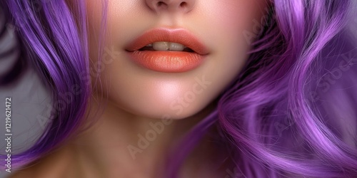 purple, hair, orange, lip, woman, female, young, caucasian, make-up, closeup, vibrant, colourful, beauty, style, fashion, bold, artistic, expression, face, coiffure, lipstick, high-coloured, striking, portrait, cosmetic, glamour, modern, elegance, trendy, unique, chic, aesthetic, daring, creativity, allure, sensual, fresh, styling, personality, feminine, image, picture, look, girl, charme