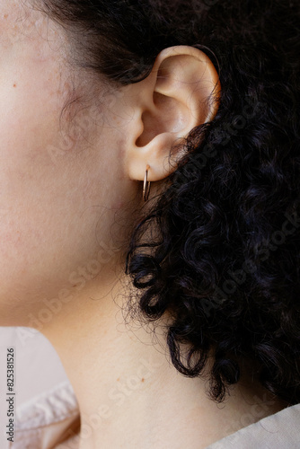 Close-Up of Womans Curly Hair and Ear
