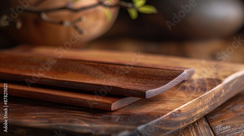 Close-up of wooden cutting boards with rustic texture