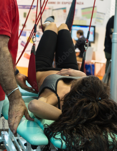 indoor, norge, training, aid, athlete, bed, body, broken, closeup, cord, doctor, equipment, examine, exercise, fitness, foot, girl, gym, health, hospital, kinetic, leg, lying, medicine, movement, muscular, patient, people, physical, pilates, rope, sling, sport, strength, suspended, table, therapeutic, traction, trainer, treatment, woman, physical exercise