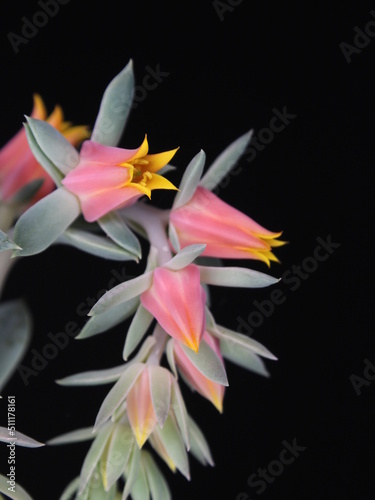 plant, pot, flower, nature, leaf, isolated, herb, blossom, gardening, growth, flora, botany, decoration, potted, houseplant, flower, flowerpot, black background, succulent, succulent plant, inflorescence, black, green, yellow, macro, detail, closeup