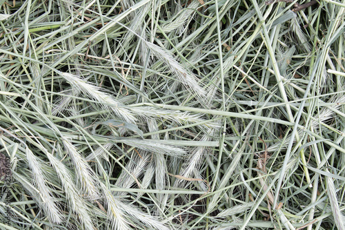 Closeup photo of hay made of dried rye heads