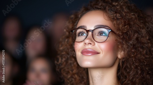 woman, portrait, curly, hair, beauty, hopeful, gaze, glasses, closeup, model, female, face, eye, smile, expression, girl, young, attractive, pretty, elegant, fashion, style, chic, trendy, vibrant, happy, optimistic, confident, positive, joyful, serene, calm, peaceful, innocent, sweet, gentle, kind, radiant, aglow, stunning, gorgeous, charming, alluring, captivating, individual, person, human, photographer