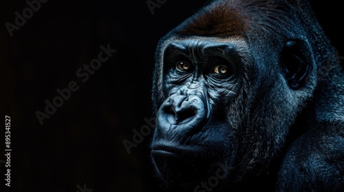 Closeup portrait of a majestic gorilla against a dark background showcasing the beauty of nature and wildlife wildlife in Africa safari wilderness tourism advertising concept