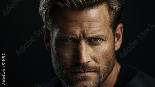 man, portrait, blue, eye, rugged, feature, intense, expression, dark, background, textured, hair, strong, confidence, masculinity, lighting, gaze, dramatic, serious, facial, modern, fashion, style, studio, emotion, male, model, captivating, charming, photogenic, personality, detail, head shot, professional, charismatic, depth, creativity, artistry, mood, ambience, visual, striking, attracted, allure, character, look, aesthetic
