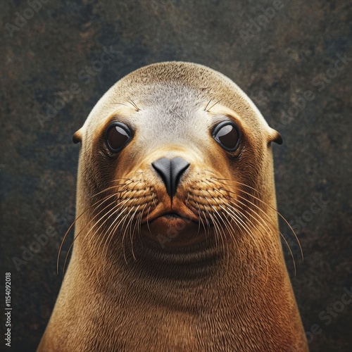 Close-Up Portrait of a Sea Lion Against a Dark Textured Background