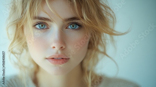 Close-up portrait of a serene young woman with natural beauty and soft features