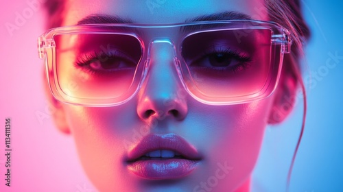 woman, closeup, portrait, futuristic, sunglasses, pink, stylish, bold, chic, modern, trendy, sleek, contemporary, edgy, unique, reflective, vibrant, fashion, beauty, high technology, confident, artistic, innovative, creative, experimental, glossy, aglow, cutting edge, polished, glowing, distinctive, professional, urban