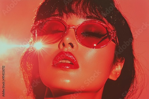 woman, portrait, sunglasses, red, lip, glowing, skin, face, eye, eyelash, hair, light, sun, shine, bright, fashion, beauty, model, style, make-up, glamour, retro, vintage, summer, warm, bold, confident, alluring, vibrant, feminine, sexy, attractive, head shot, cheek, nose, chin, ear