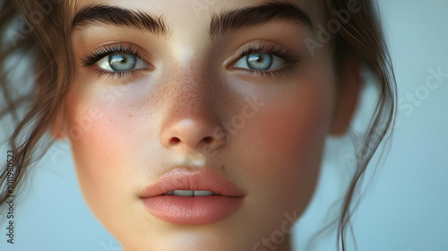 Closeup Portrait of a Woman with Blue Eyes and Freckles - 3D Illustration