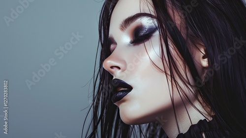 woman, portrait, make-up, black, lipstick, dramatic, eye, dark, hair, style, fashion, pose, model, beautiful, face, beauty, eyeshadow, closeup, head shot, glamour, attractive, gorgeous, artistic, shadow, intense, smokey, eyeliner, glowing, soft, skin, cool, elegant, feminine, young, bright