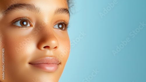 skincare, acne, hydratation, girl, portrait, background, close, young, serene, expression, blue, snapshot, youth, high-coloured, cheerfulness, gaze, softness, model, stillness, artwork, emotion, innocence, childhood, moment, calmness, warmth, kindness, wonder, mood, capture, beauty, detail, feature, friendliness, playfulness, human, colours, engagement, profile, nature, peace, grace, light