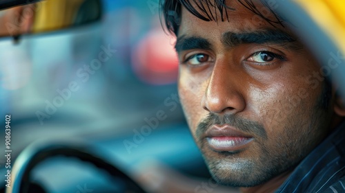 portrait, closeup, male, taxi driver, indian, young, man, friendly, expression, taxi, transportation, profession, occupation, human, face, ethnic, cultural, heritage, identity, service, vehicle, urban, city, work, job, skilled, vibrant