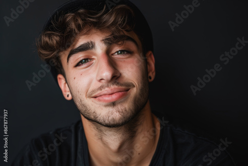 caucasian, white, man, european, closeup, portrait, success, joy, confidence, carefree, fashionable, looking, male, young, posing, studio, young adult, youth, people, person, 1, head, face, eye, look, lip, beauty, model, attractive, expression, natural look, sensuality, confident, strength, focused, guy, life, stylish, photogenic, beautiful, pretty, charming, casual attire, happiness, beard, copy space, fashion, hat