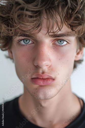 Close-up portrait of a young man with intense gaze