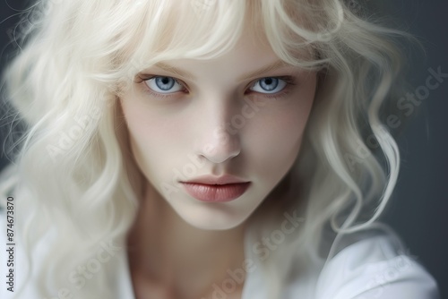 woman, blue, eye, blond, hair, portrait, close, up, female, beauty, intense, gaze, young, adult, curly, aethereal, caucasian, pale, skin, facial, feature, beautiful, attractiveness, serious, expression, mysterious, elegance, fashion, youth, natural, contemplative, light, complexion, innocence, pensive, delicate, model, graceful, make-up, soft, white, blouse, subtile, dreamy, alluring, femininity, depth, field, clear