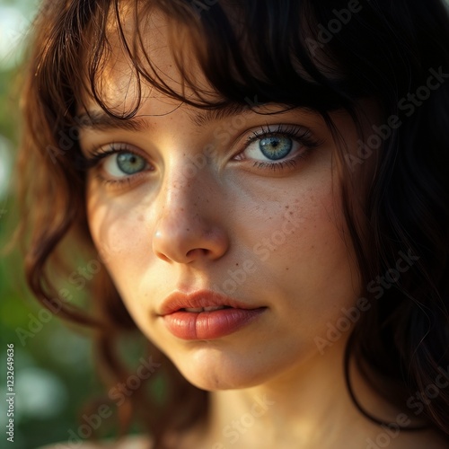 woman, portrait, closeup, freckle, young, beauty, natural light, gaze, expression, face, model, emotional, attractive, detail, coiffure, skin, aesthetic, intimate, charming, serene, feminine, stunning, visual, texture, personality, captivating, softness, serenity, art, youthful, radiant, warm, feature, creativity, photo, striking, unique, character, glow, peaceful, copy space