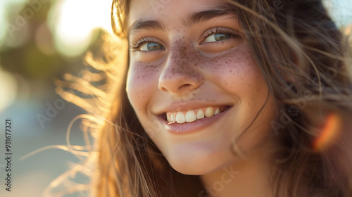 woman, portrait, smile, happy, beautiful, freckle, face, eye, hair, wind, sunlight, natural, summer, skin, girl, young, youth, model, fashion, beauty, lifestyle, joy, healthy, positive, optimistic